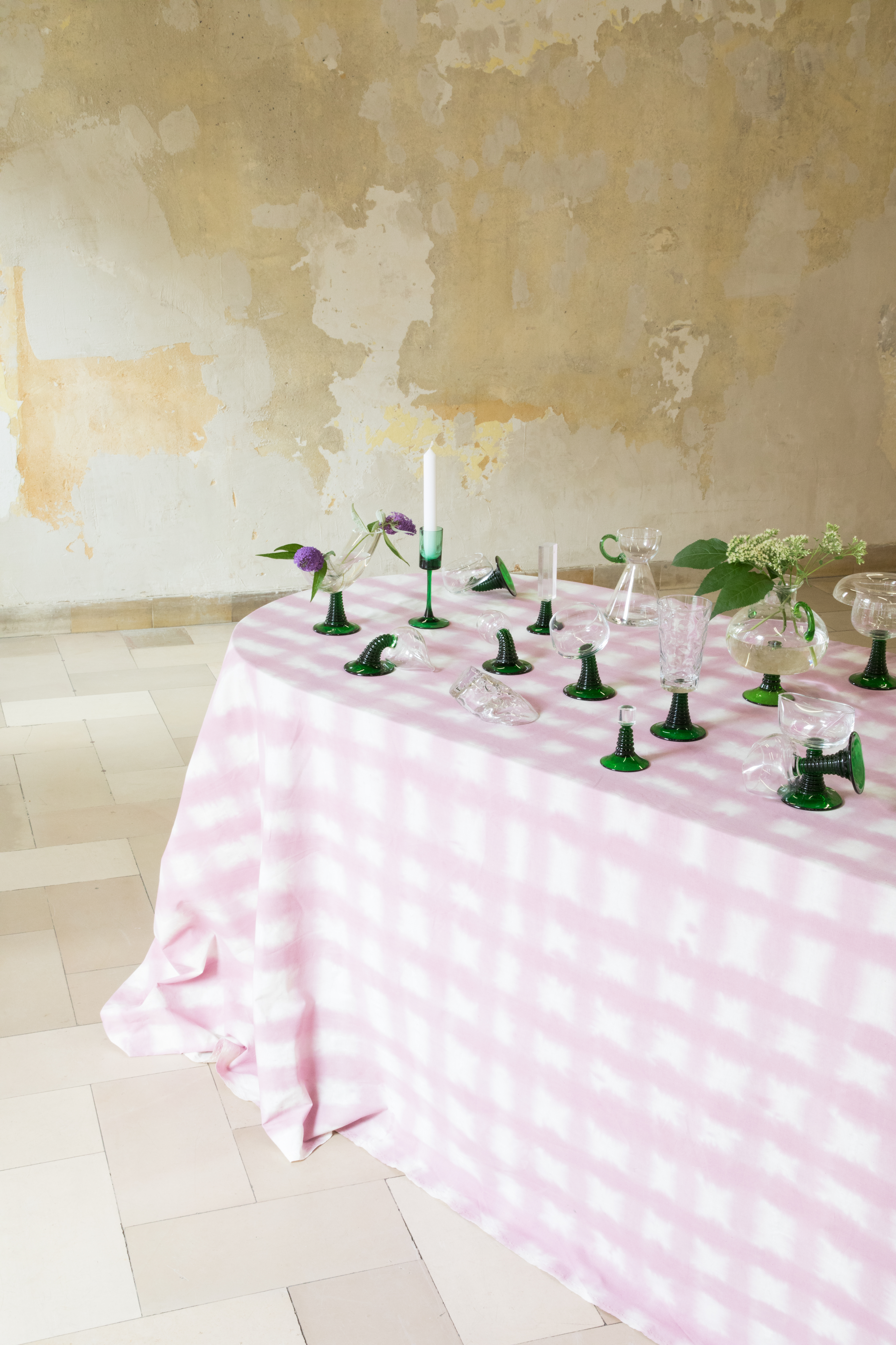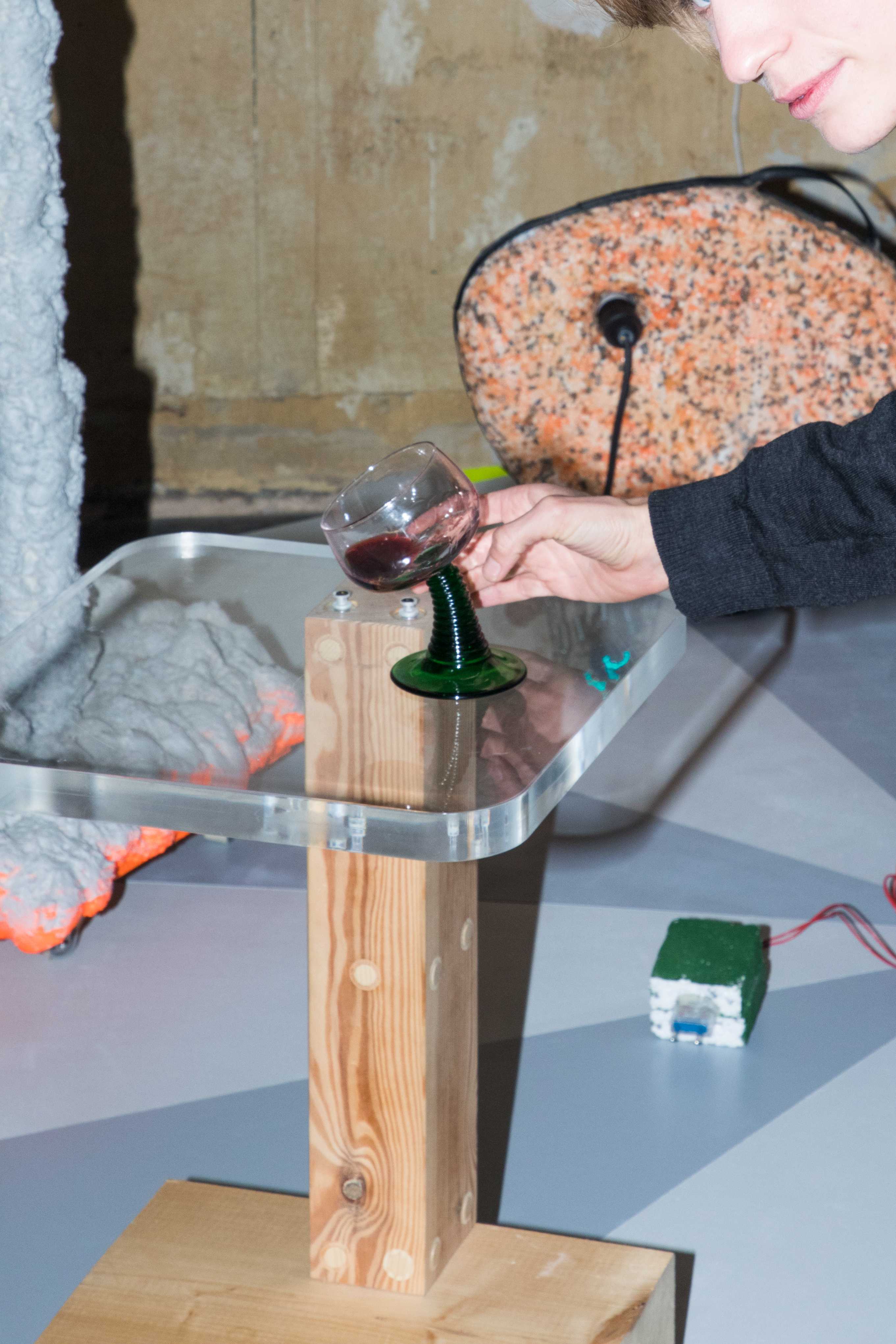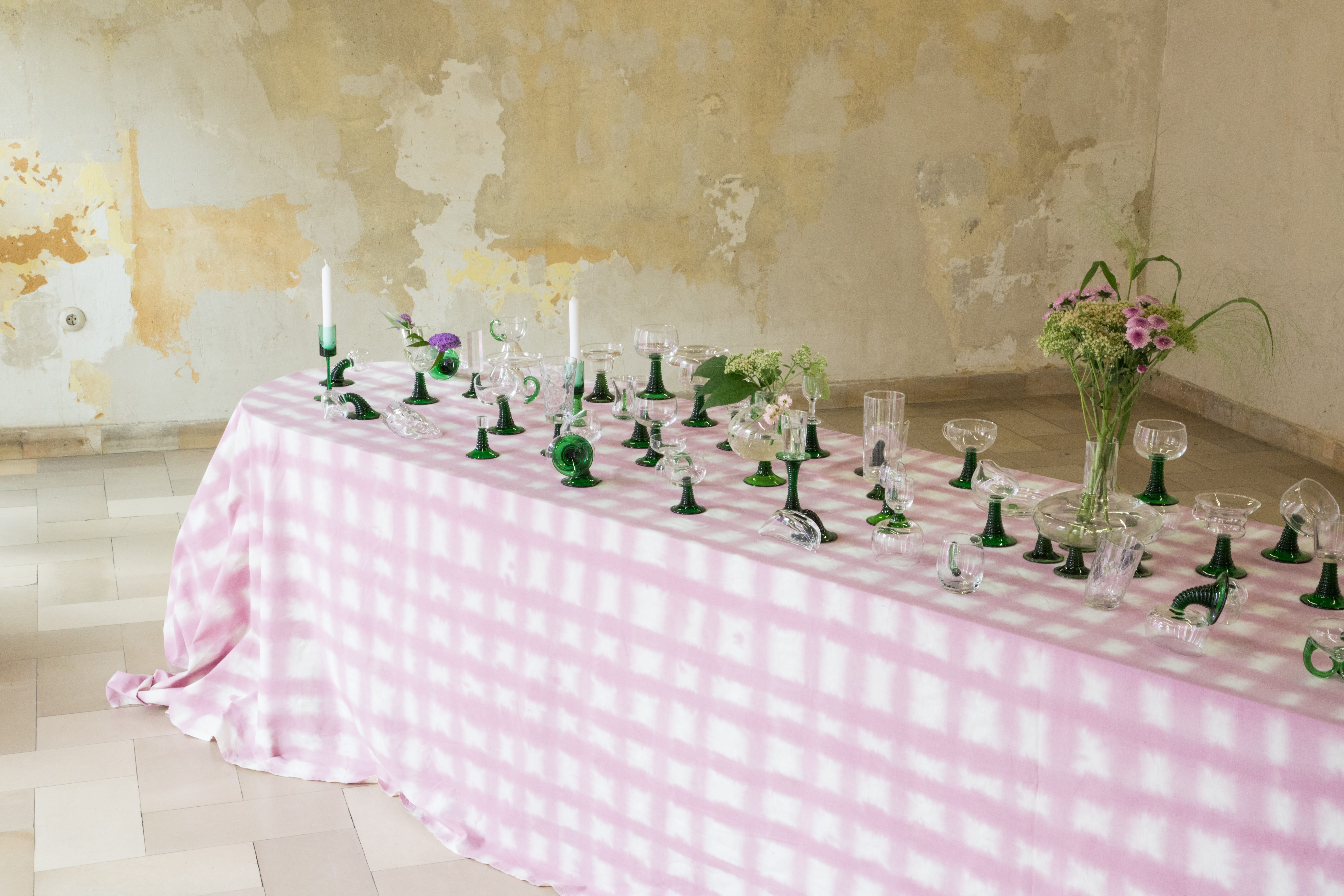 Exhibition of Fan No.1: Romer, with a new set of engraved Hessian apple wine (Ebblwoi) glasses, especially for this occasion as well as an XXXL Size red wine table cloth, customized for Tokonoma's room filling table. Next to showing and using the glassware, we presented Fan No. 4: Carousel on an actual Carousel, that was able to be activated by the visitors of the show.