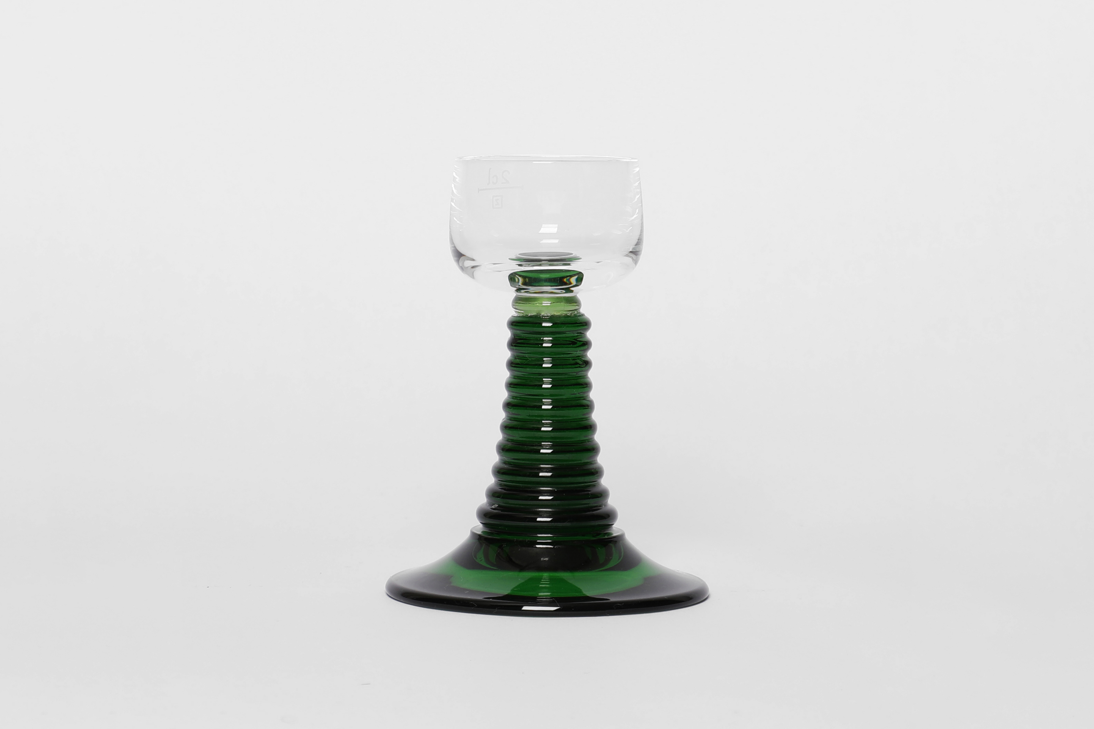 The green stem, originally coming from the natural iron content of the raw materials sand and potash, soon became characteristic of the Römer, which today has become a synonym for the wine glass: toasting each other with 25cl.