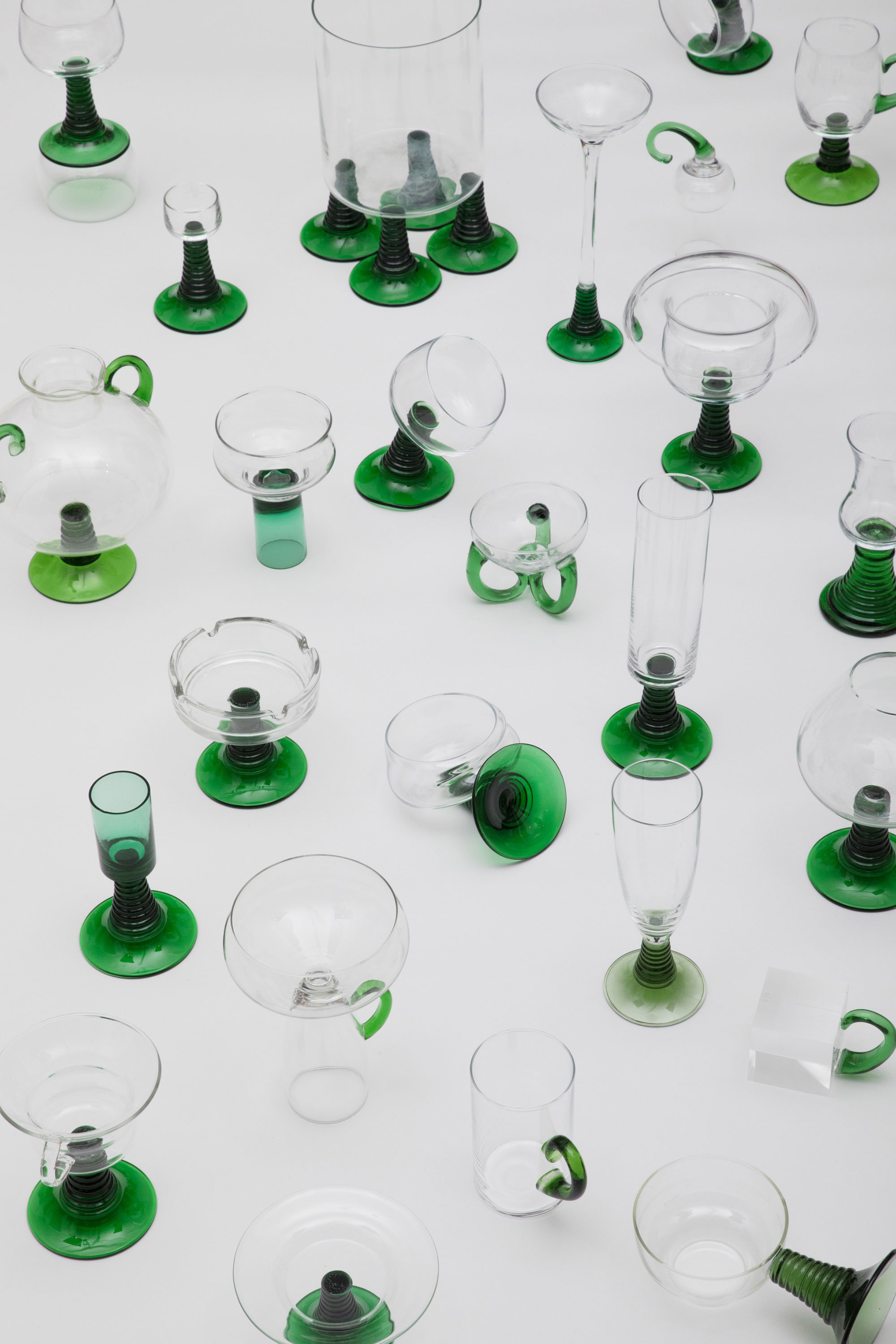 With the first collective exhibition of FAN we praise the Römer glass and postulate a new chapter for its shape: 120 stems, 96 glasses, all unique.